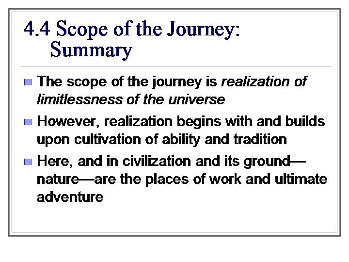 Scope of the Journey--Summary