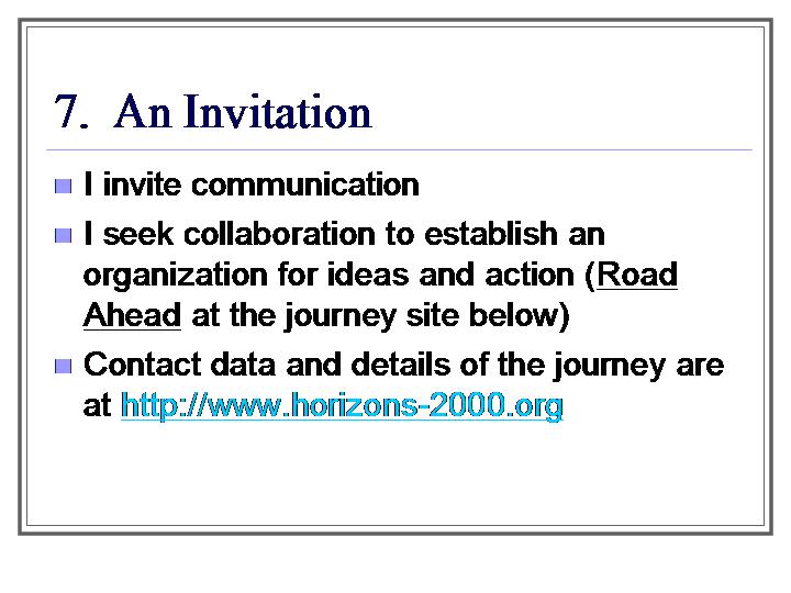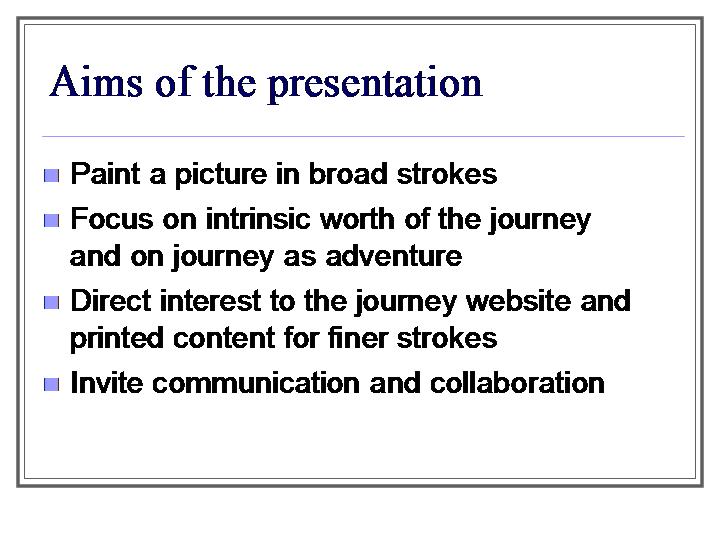 Scope of the Journey--Preliminary